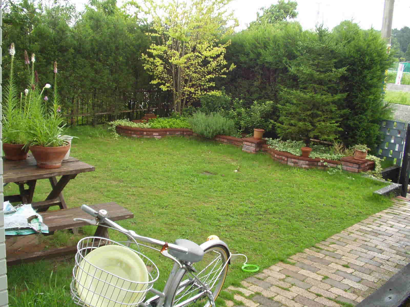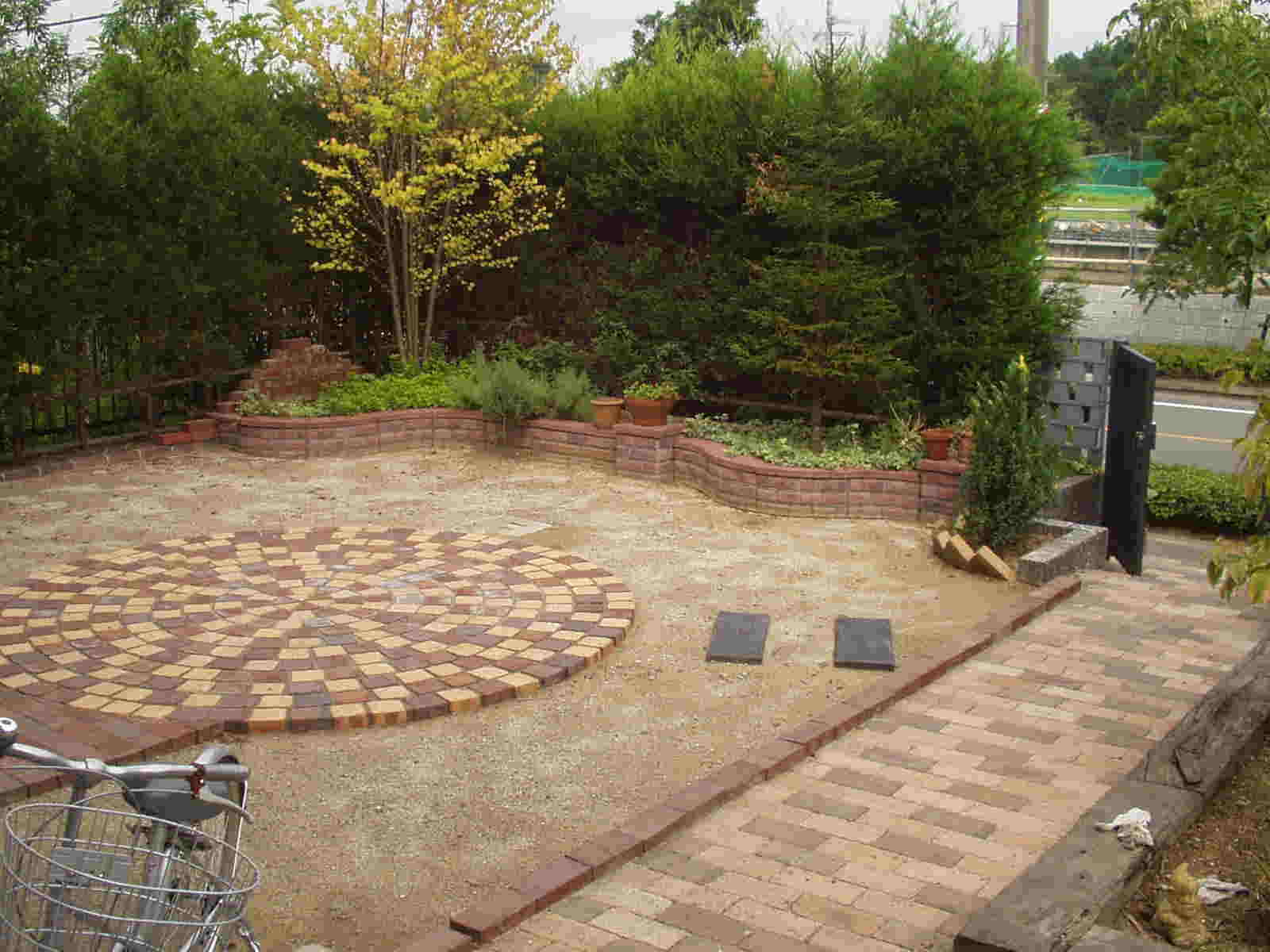 芝が無くなり殺風景になってしまうので、レンガでサークル状のステージを作ってみました。