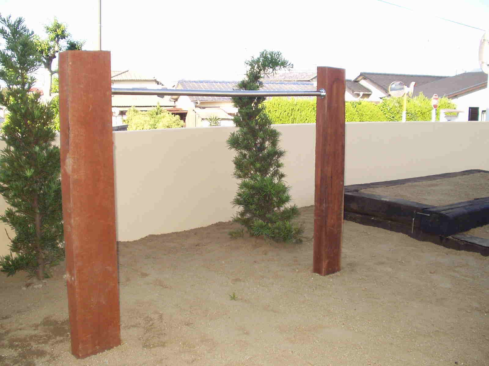 「学校で逆上がりの練習中の娘に鉄棒を作って」と工事終盤に突然な依頼。