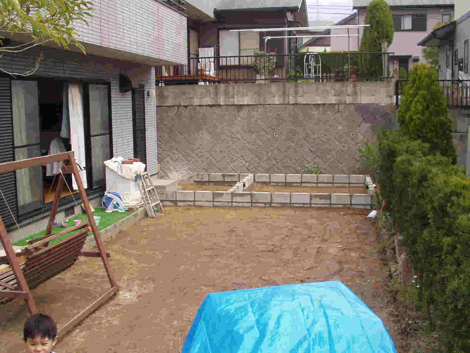 固定されるもの(通路、花壇の縁取り、ポーチなど)はコンクリートで固め何年でも使える様にします。