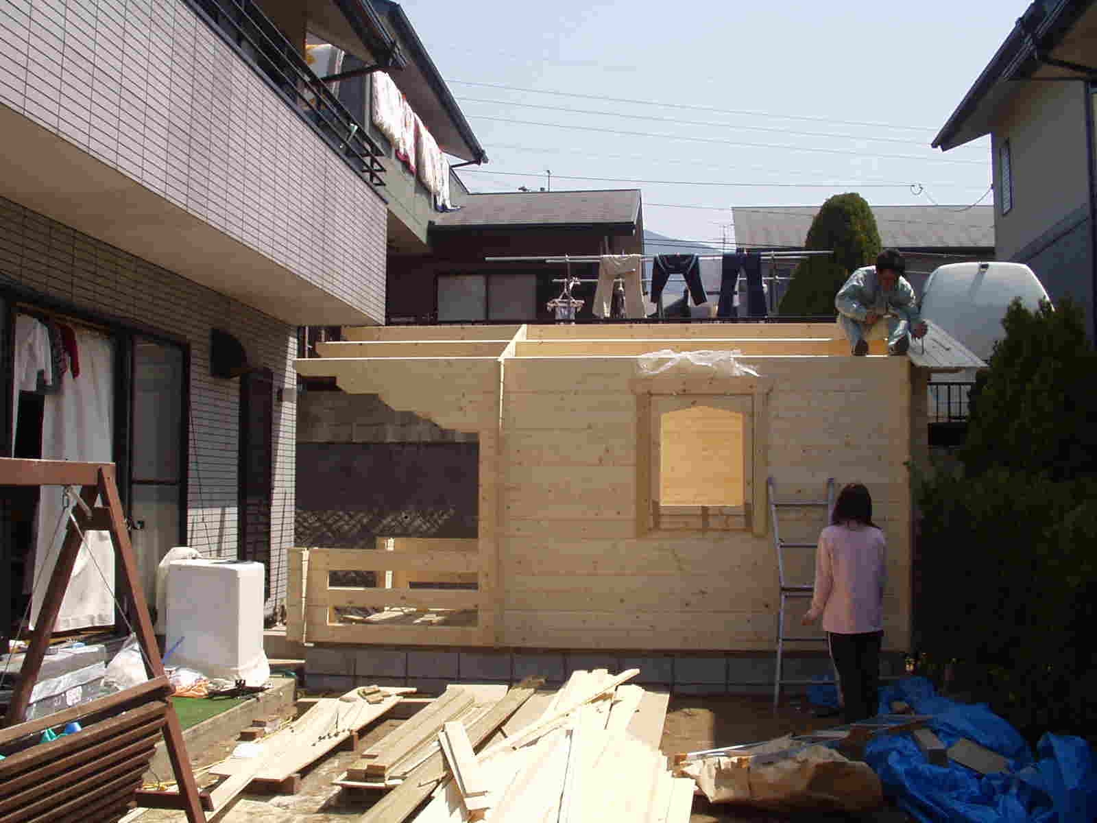 ログハウスは組み立て4日間で完成でした。