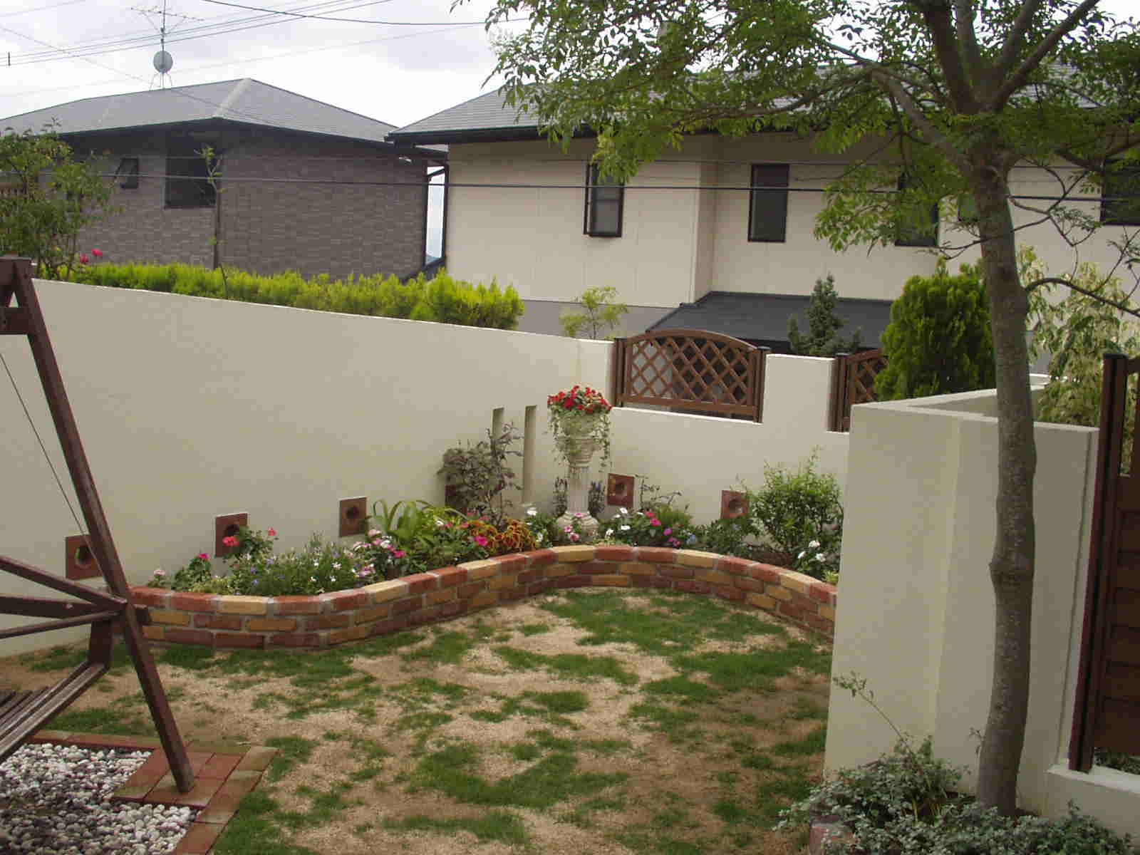 奥さん作の花壇。レンガ積みは初めてのはずだったがなかなかの出来でした。