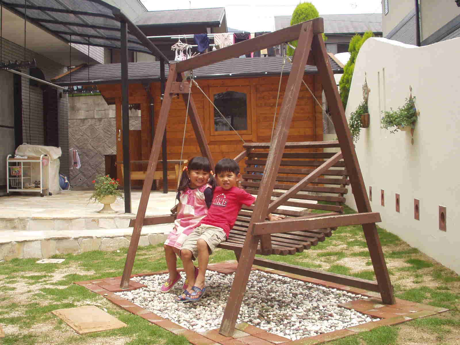 庭が完成し、今まで使っていたブランコがまた戻ってきました。