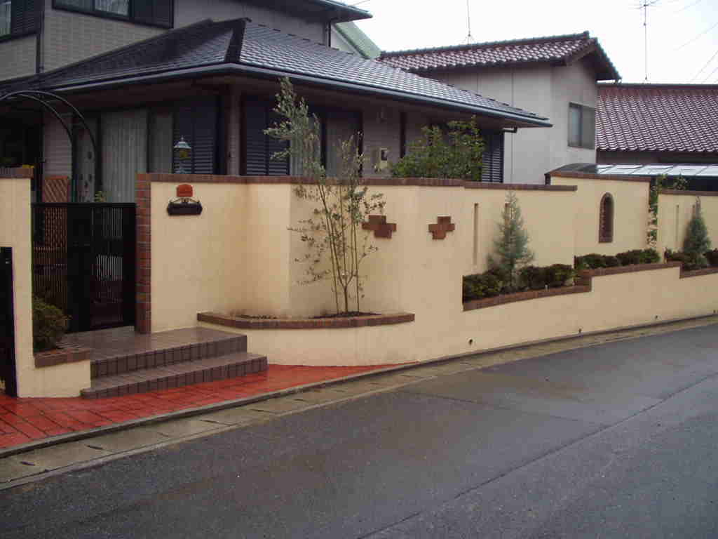 ブロックの塀にはレンガをのせて仕上ました。
