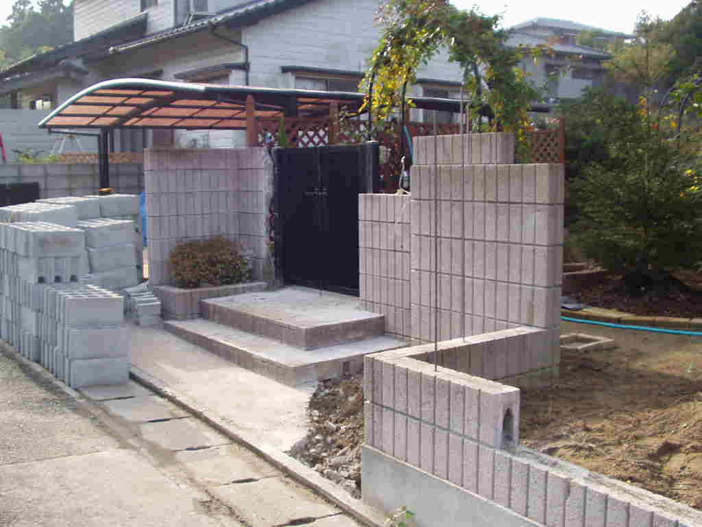 今回の依頼内容は垣根として植えている木の剪定が大変なのでブロックにしたいとの事でした。