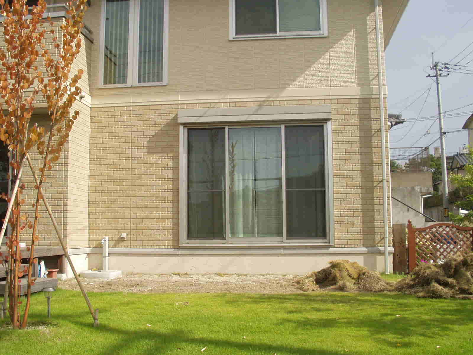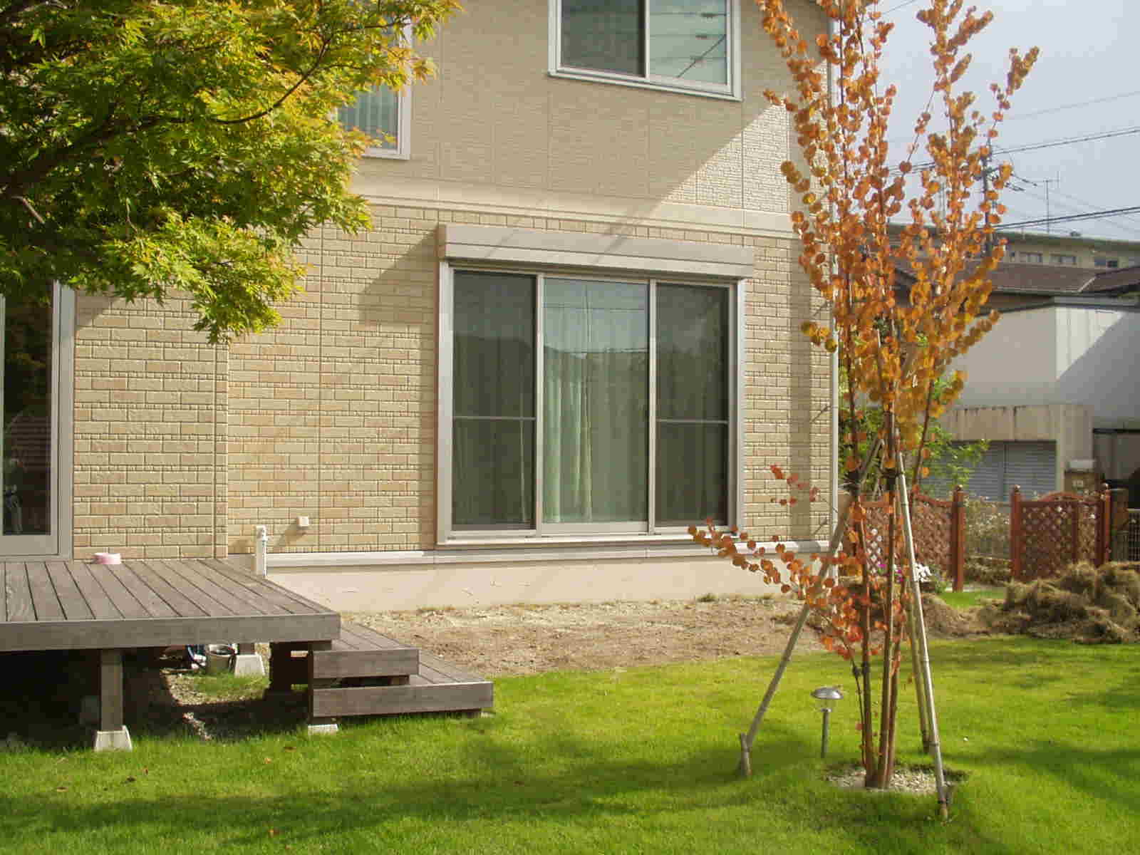 広い庭にきれいに手入れされた芝があり、完成写真写りがいいのが想像できます。