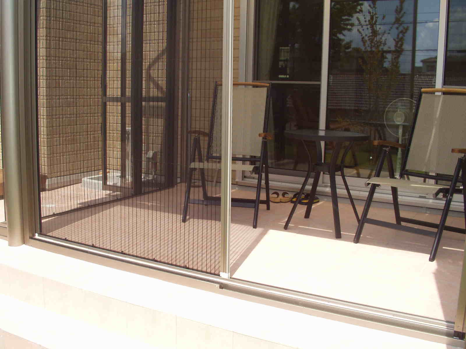 これがプリーツ網戸。引き違い式に比べ、開放感が違います。