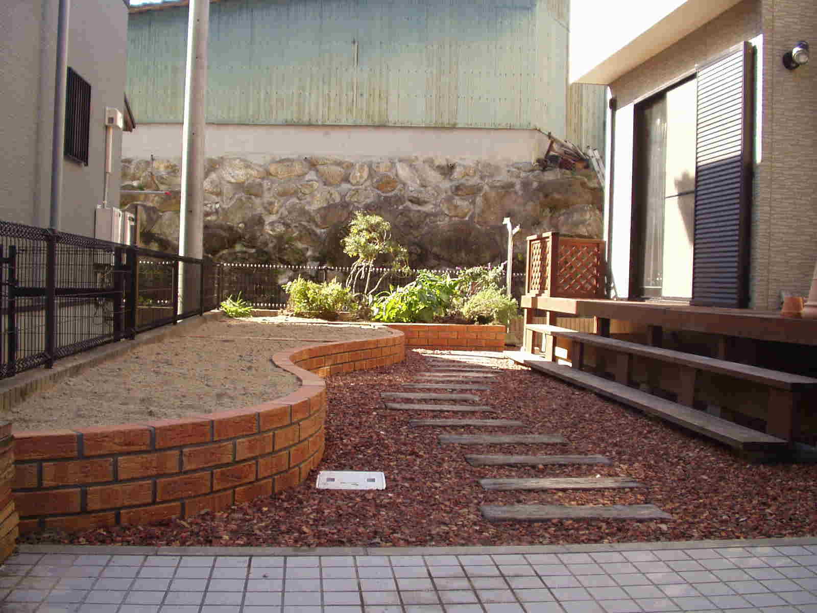 コンクリート製の枕木を飛び踏み石代わりに並べました。